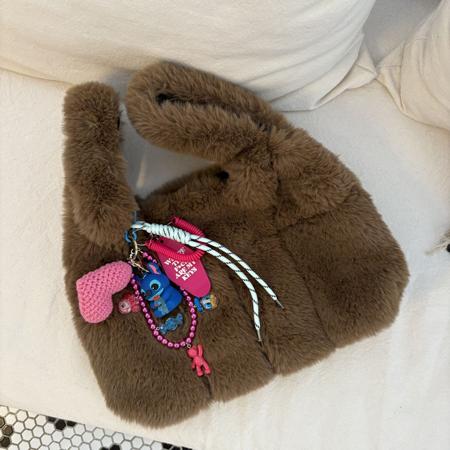 Le tout est rassemblé sur un mousqueton bleu parce qu’il voir la vie en Rose et bleu, pourquoi pas? Idéal pour personnaliser son sac avec amour.